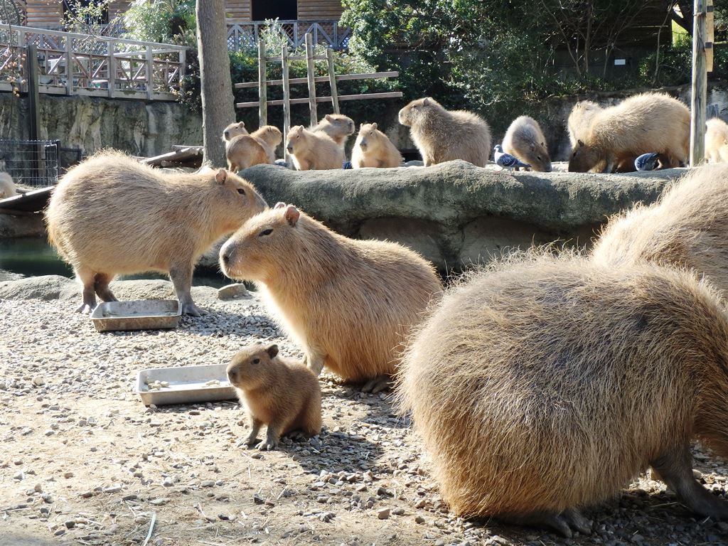 2007年、カピバラが最初にとくしま動物園にやってきた時はたった3頭でした。そこから10年後の2017年には50頭に増え、そして現在では約80頭が暮らしているとのこと。