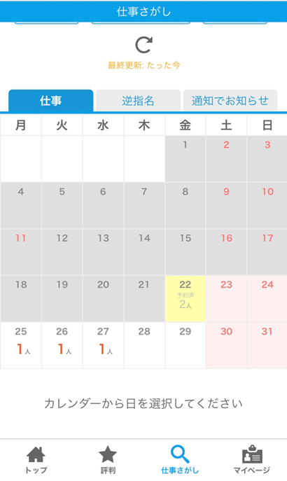 カレンダーから募集がある求人を探すことができ、直感的に操作することができます。