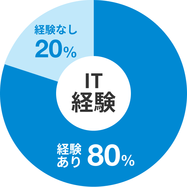 専門スキルが必要かつ即戦力が求められがちなITエンジニアは、経験必須の募集がほとんどでしたが、徐々にIT関連未経験の人材の採用や育成も行われるようになり、弊社での紹介実績の20%は経験者ではありません。